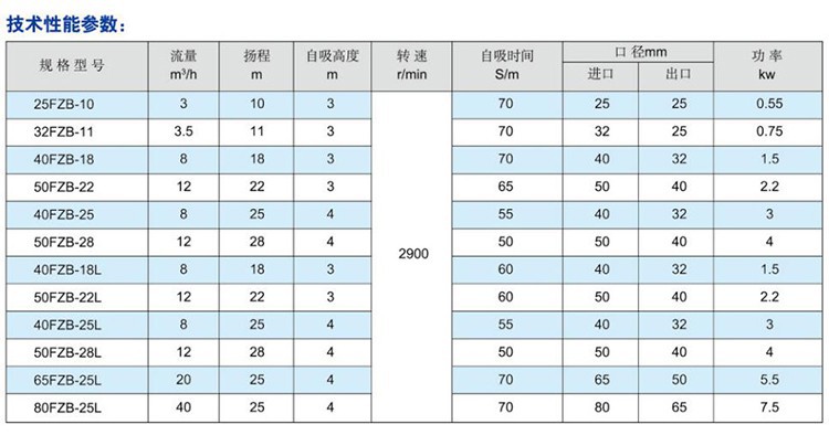 FZB氟塑料自吸泵突出的特点就是具有自吸功能,可抽送低于泵安装位置以下的液体,且性能稳定,操作简单,只需在泵初次使用前灌液后,再次及以后使用则无需灌液,直接开机即可,自吸高度可根据介质密度在2至4米内确定,是替代体型笨重的液下泵的较好选择。该自吸泵采用目前先进的外装式四氟波纹管机械密封,拥有多层保护,延长了机封使用寿命,对于输送含杂质颗粒介质时,可配用无冷却水单端面硬对硬(碳化硅对碳化硅)机械密封,所以用户选型时需要考虑到固体的含量。
